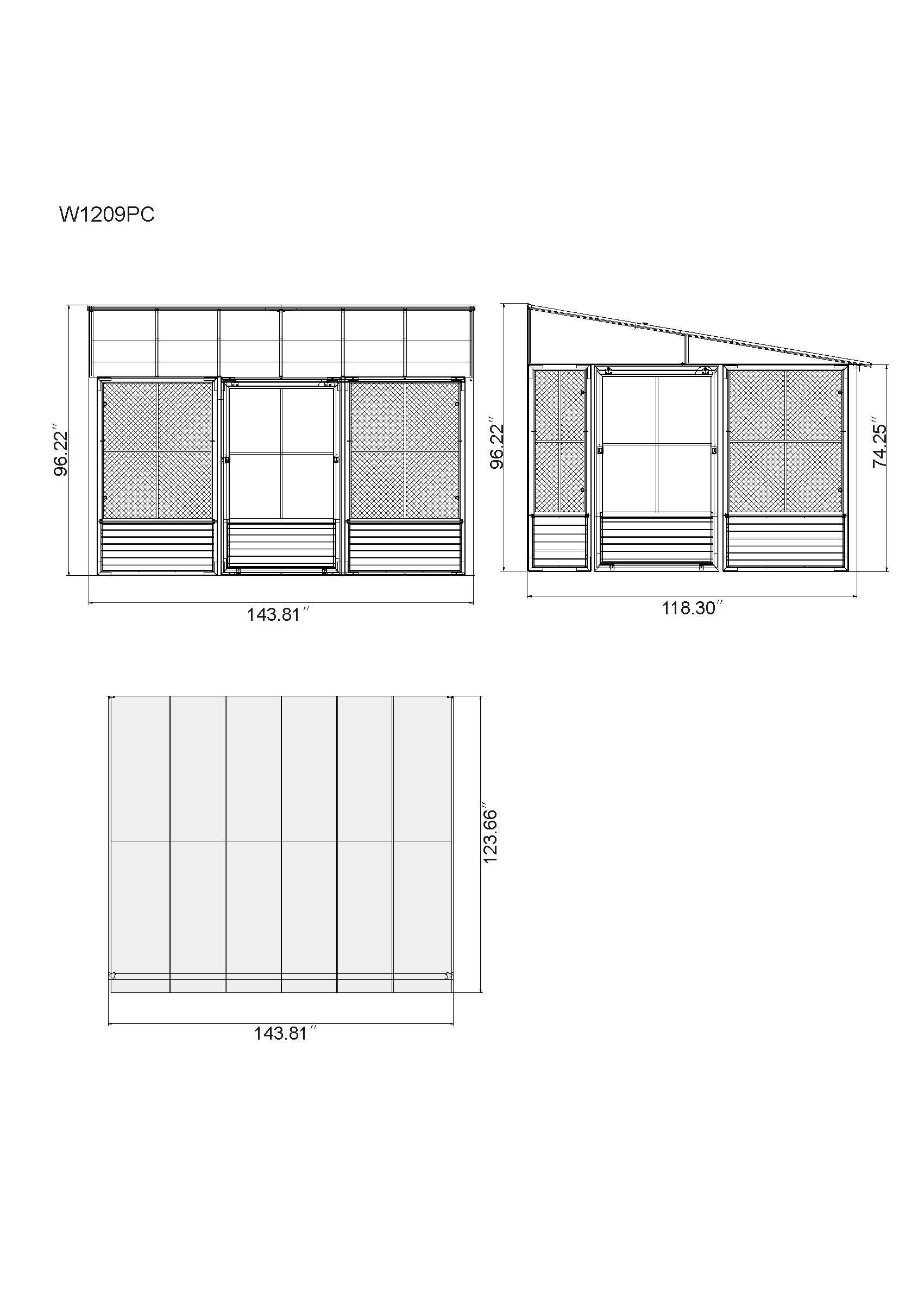 - Roof Material: 8 mm Polycarbonate Panels