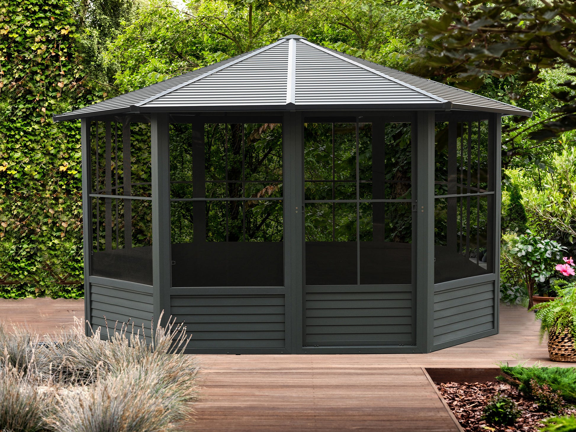 Gazebo Penguin Florence Solarium with Metal Roof 12 Ft. x 12 Ft. Black