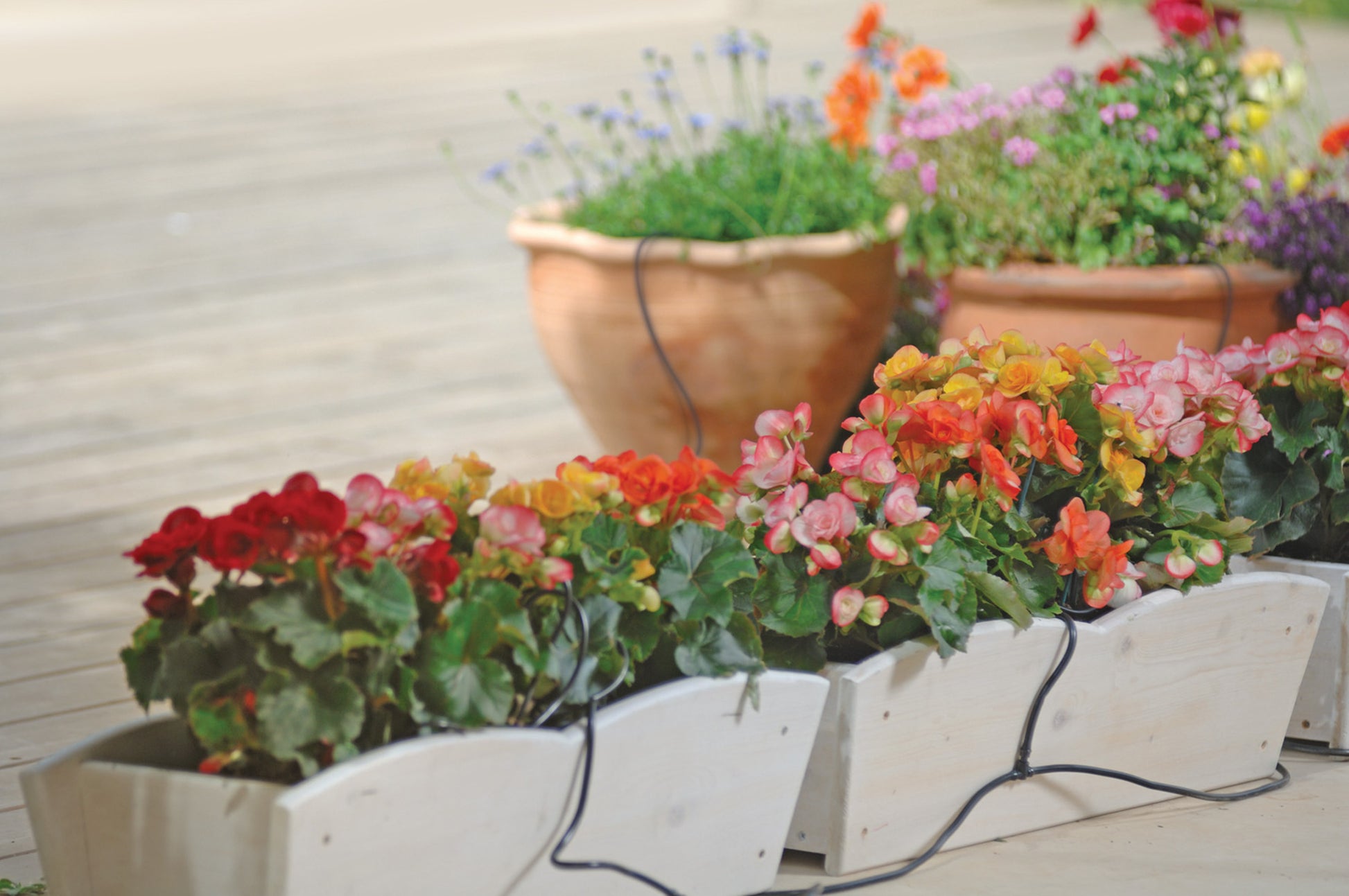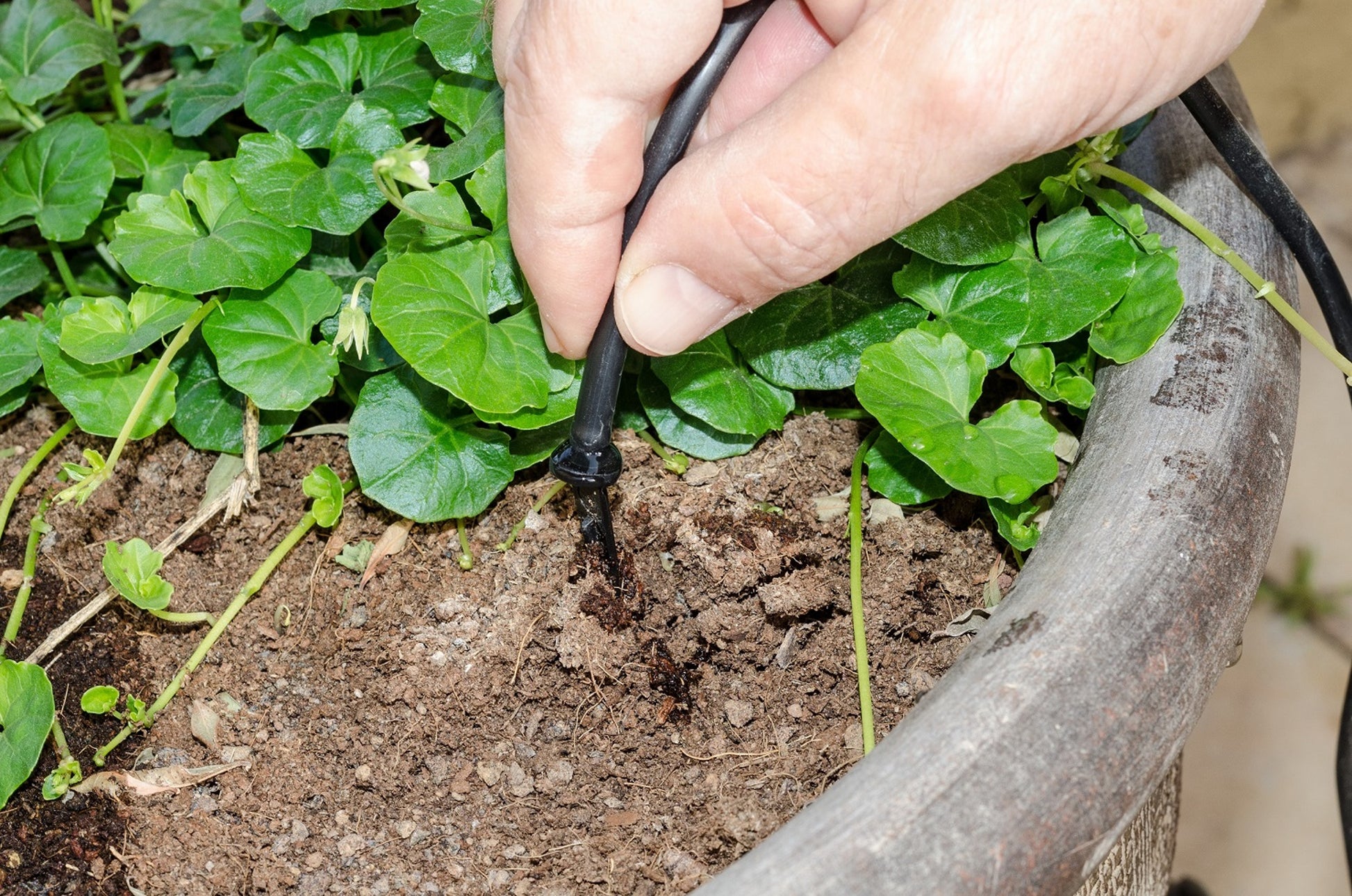 Complete watering system in a box, , 12 spike drippers in 3 sets of 4 drippers each, Water flow of .35 gallons/ hour/ dripper, saving up to 70% water , Connects directly to water hose, Includes Quick connect to water hose, Minimum evaporation and wind effect, Increase production yield by direct to root watering and less weeds and less run off, Tool Free assembly designed for container growing (3 containers/ planters) designed by growers , Made in Israel since 1906.