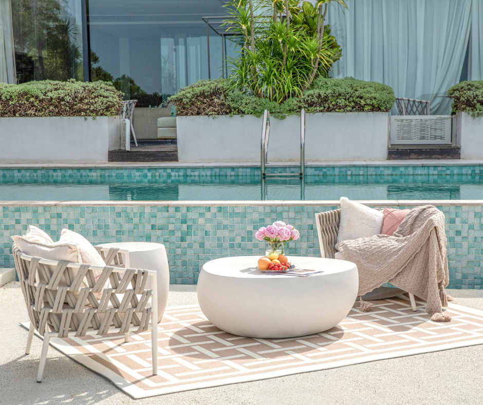 Ikaria 42" Egg shape Concrete Coffee Table-CREAM WHITE By Elementi Home