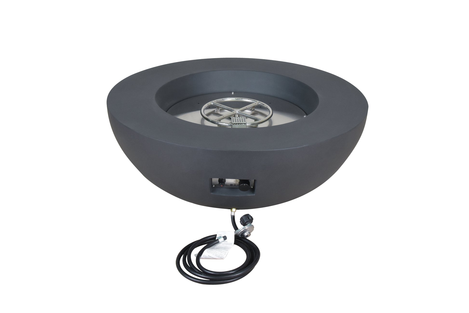 The Lunar Bowl in dark grey is a sleek, modern fire pit designed for small patios and year-round outdoor use. Crafted for durability and smokeless performance, it offers a clean, natural flame experience fueled by propane. Ideal for intimate backyard gatherings, this designer fire pit combines style with functionality. Enhance your setup with optional accessories such as a lid, windscreen, and tank cover for added convenience and protection. Perfect for those seeking a sophisticated and efficient outdoor fire feature.