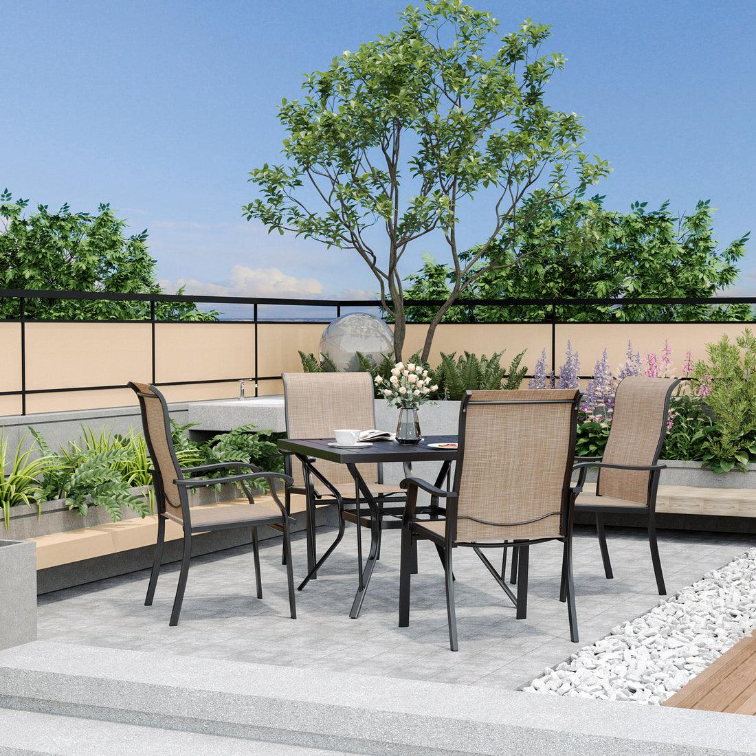 Upgrade your outdoor space with the Pamapic 5-Piece Textilene Dining Table Set. Built with a powder-coated iron frame and premium Textilene fabric, this stylish and durable set is perfect for family gatherings, backyard parties, and designer patios throughout Santa Clarita Valley.