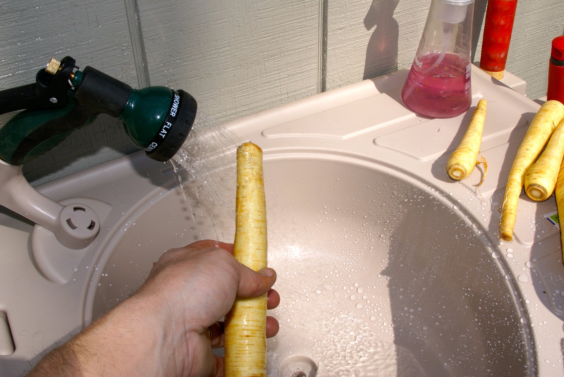 Makes washing fruit or vegetables outside easy