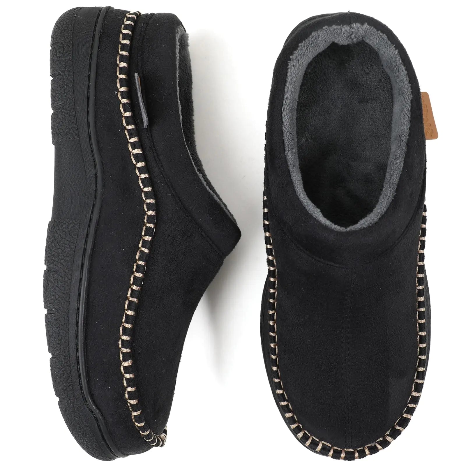 Zigzagger Men's Slip On Moccasin Slippers, Indoor/Outdoor Warm Fuzzy Comfy House Shoes, Fluffy Wide Loafer Slippers 13-14 Vanta